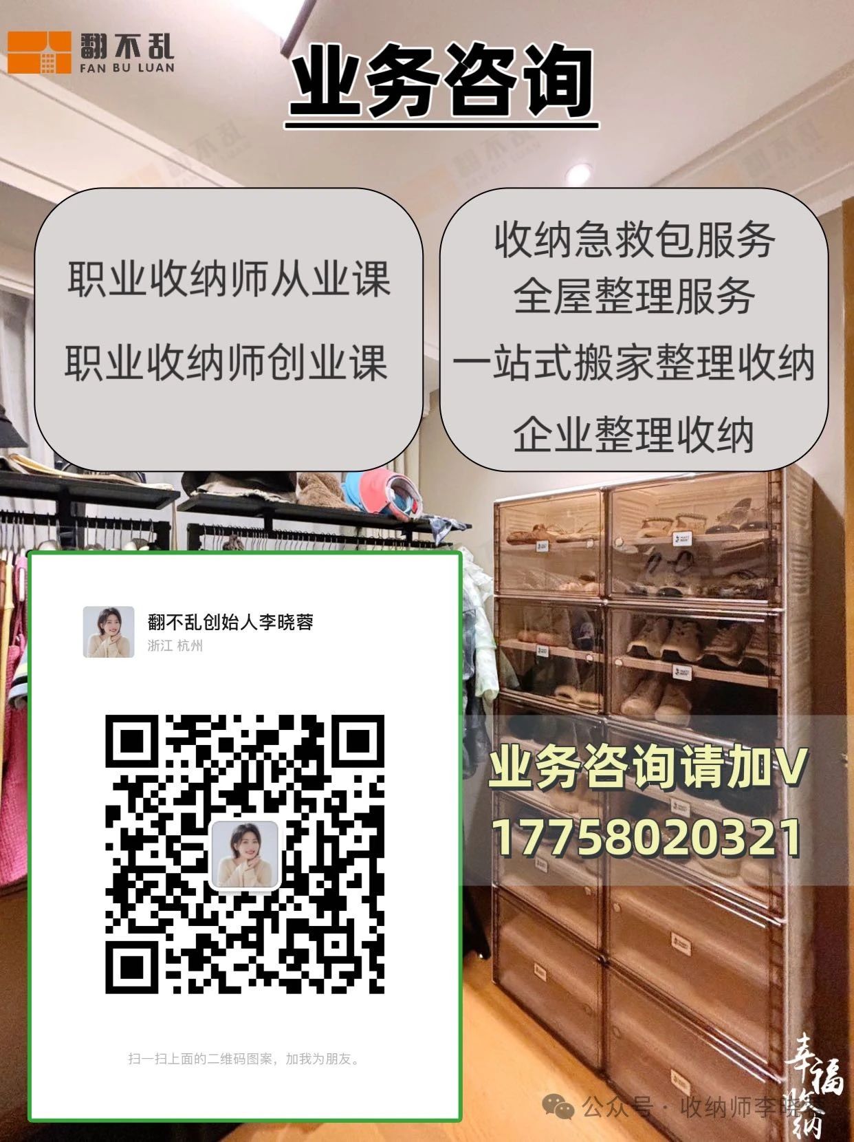 “翻不乱”诚邀您加入下一期收纳师培训,或者预订翻不乱收纳服务,亲身体验由专业收纳师带来的生活变革。更多信息和服务预订,请点击下方链接或联系“翻不乱”收纳服务公司。