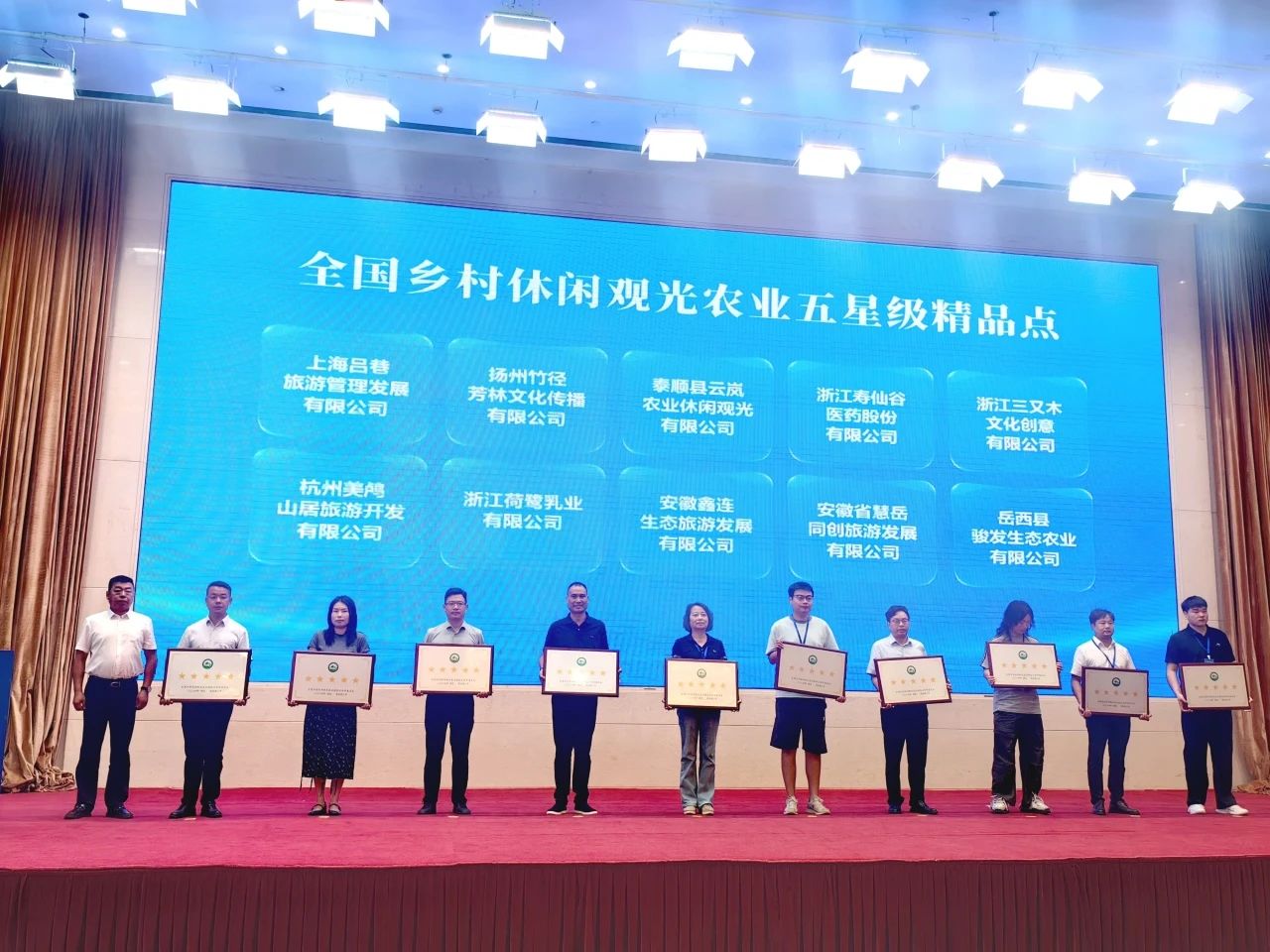 活动现场,精彩的情境式推介引领嘉宾领略了4条扬州乡村休闲旅游精品线路;来自全国12个省市的40家企业荣获“全国乡村休闲观光农业五星级精品点”授牌,我会执行会长单位浙江三又木文化创意有限公司获得“全国乡村休闲观光农业五星级精品点”授牌。