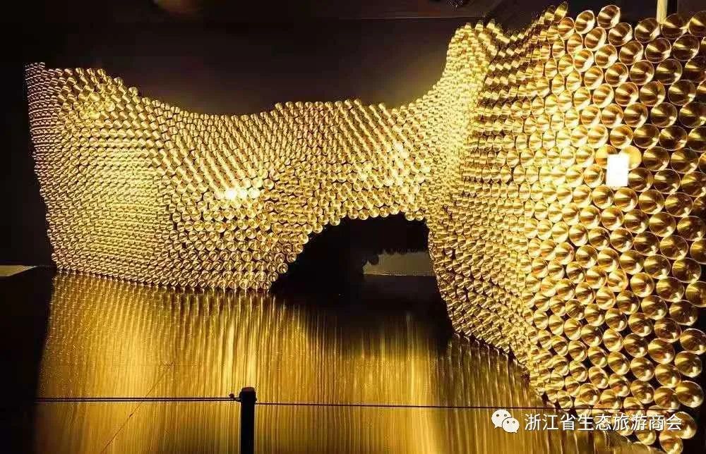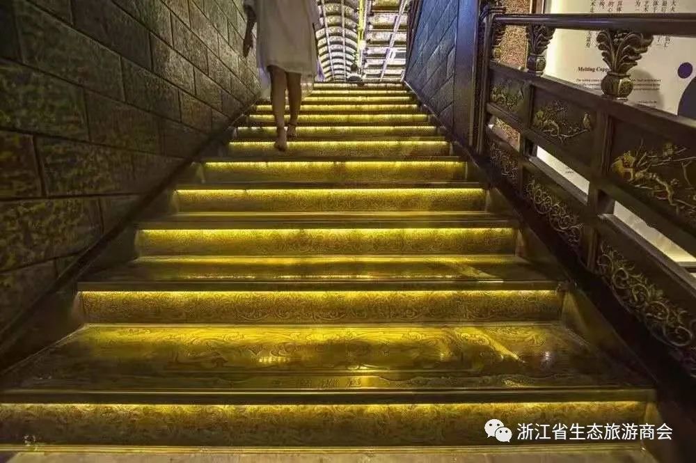 走进江南铜屋大厅映入眼帘满屋的金碧辉煌,脚踩着金色的台阶拾级而上,脚下那精美的图案花纹美丽得感觉踩到脚下都不忍,头顶绝美的天花板金灿灿的让你目不暇接,每个房间的地面纹饰,墙壁,天花板的图案花纹都不同,超乎你的想象,除了惊叹就是赞美!屋内的装饰无一例外都是铜制的,件件都是精品。栩栩如生的动物造型,抽象的各种融铜艺术品,美轮美奂的壁画,金碧辉煌的宝塔,股民最爱的金牛……各种图案,各种造型,各种雕花……用六个字来形容就是古朴、典雅、华丽!让您不得不对这铜的海洋叹为观止!