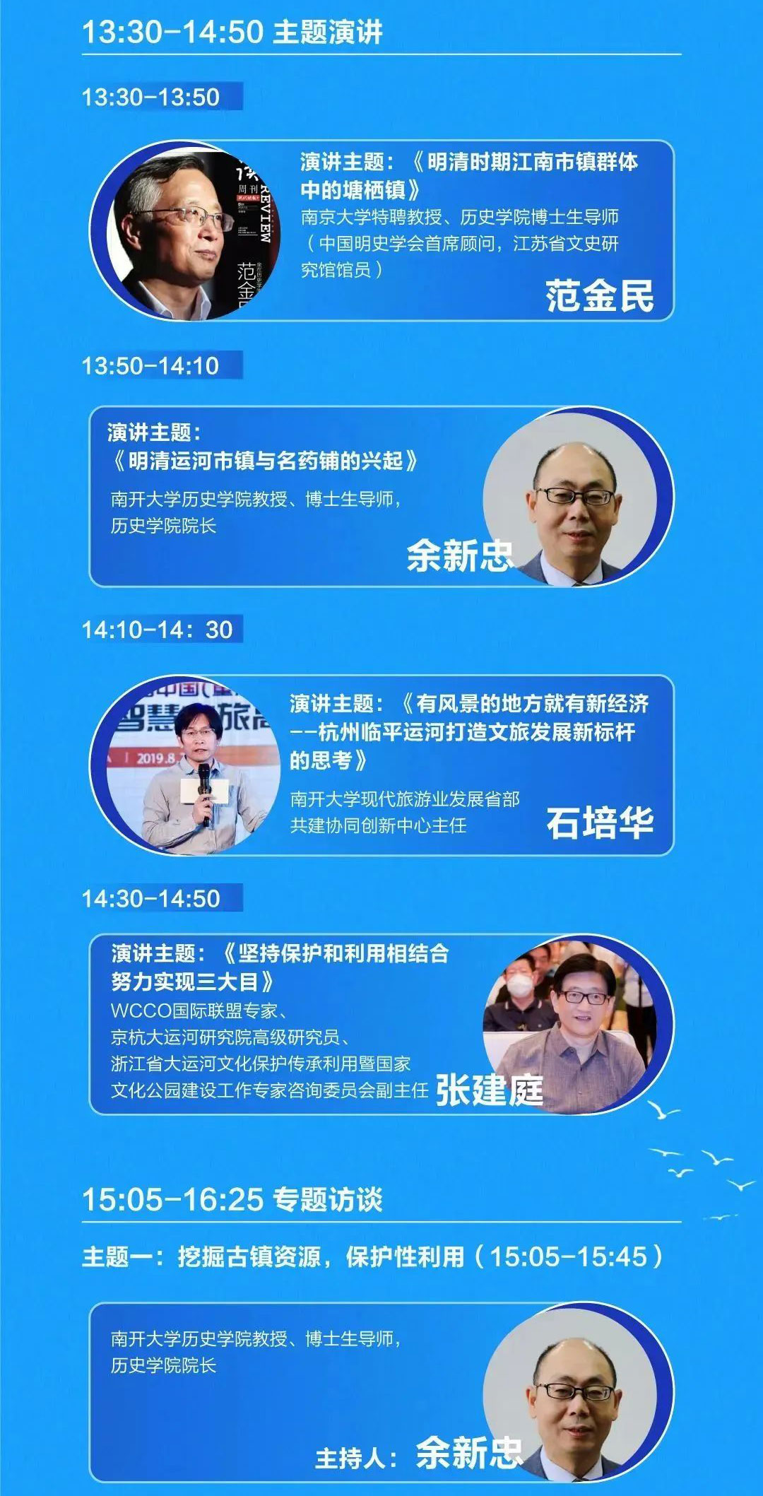 在专题访谈环节,南开大学历史学院教授余新忠,中国丝绸博物馆副馆长周旸,南开大学现代旅游业发展省部共建协同创新中心主任石培华,上海商学院党委委员姜红等专家,分别围绕“挖掘古镇资源,保护性利用”和“牵手新产业,创新性发展”主题进行了充分的交流探讨。