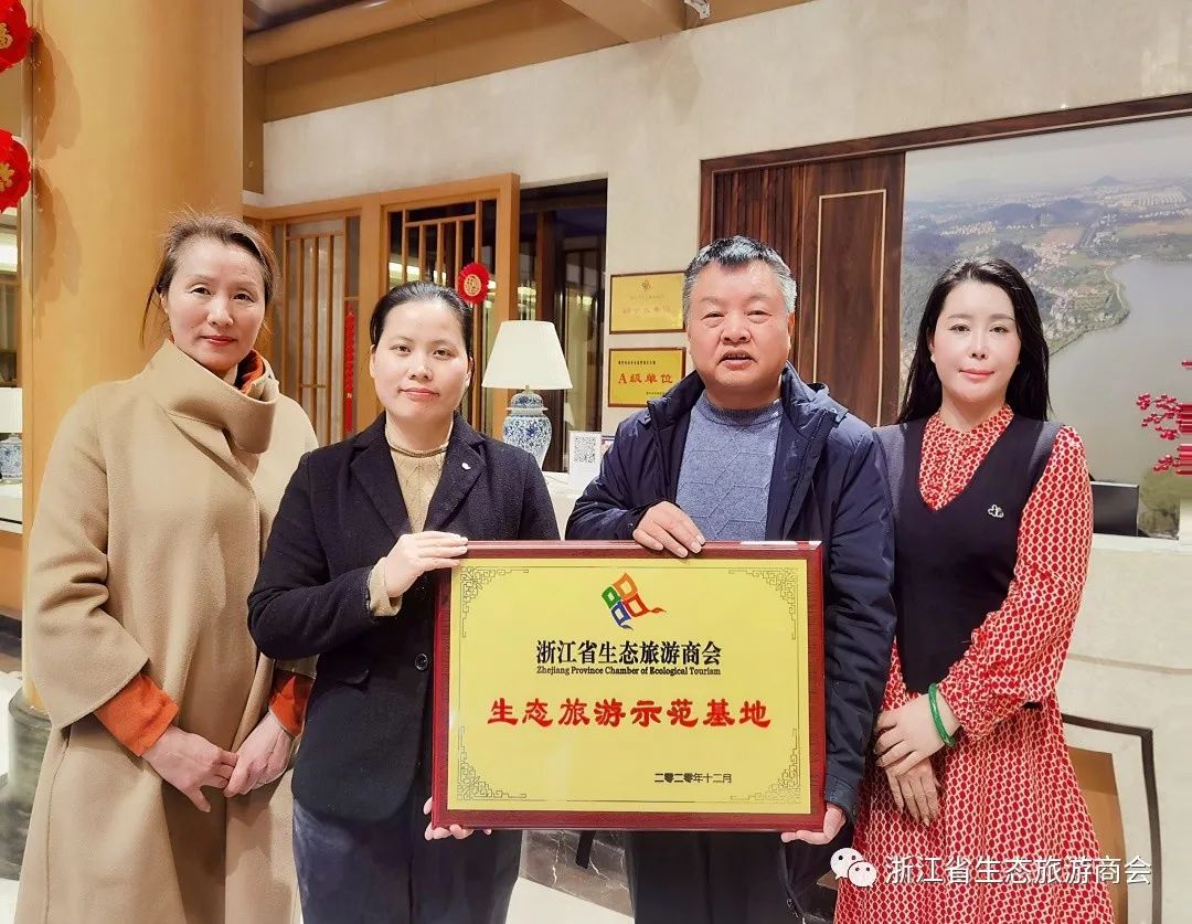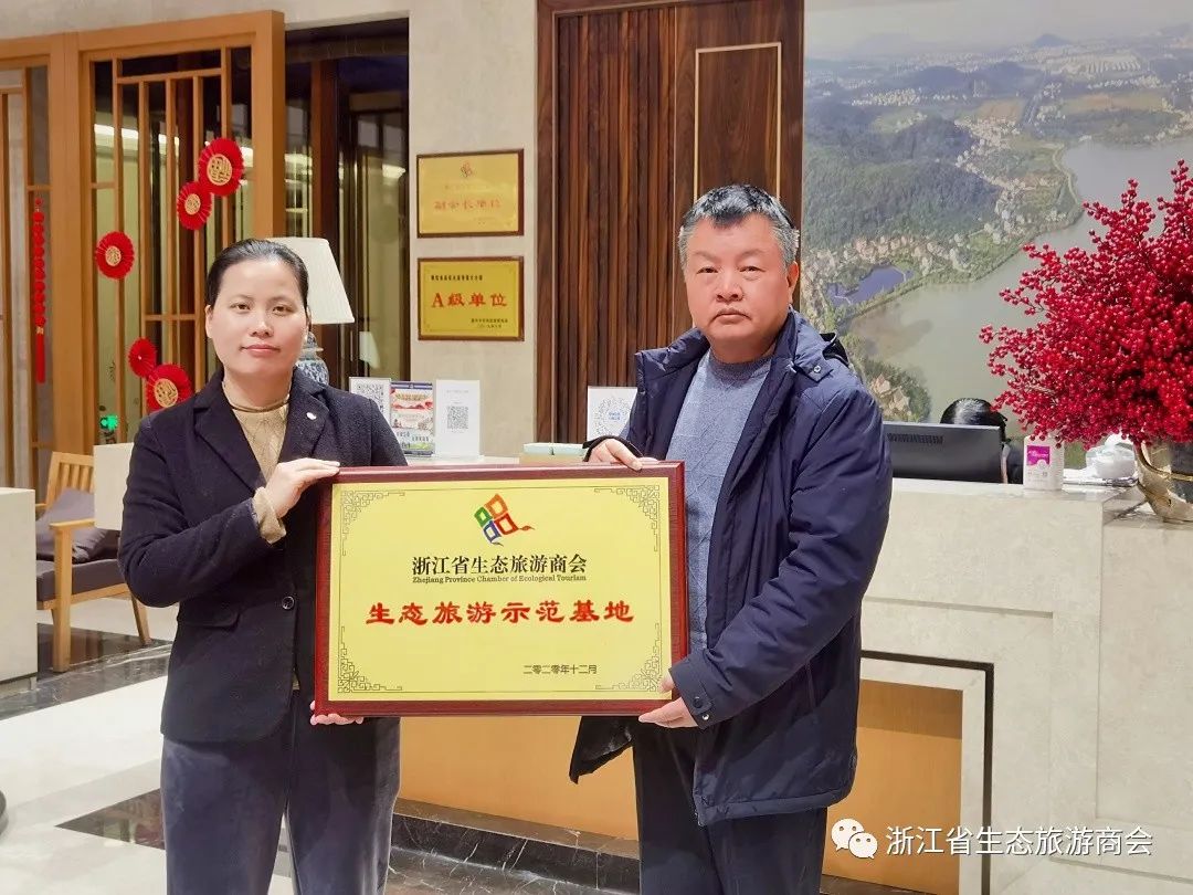 最后,执行会长蒋昭爱代表浙江省生态旅游商会为南北湖开元度假山庄授予“浙江省生态旅游示范基地”铭牌。