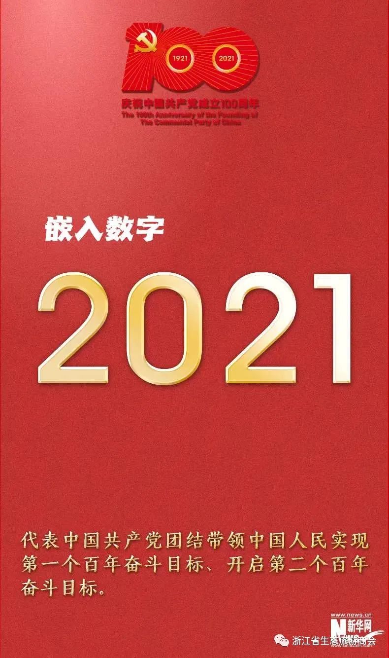 中共中央宣传部发布中国共产党成立100周年庆祝活动标识 新华社发活动标识由党徽、数字“100”“1921”“2021”和光芒线组成,生动展现中国共产党团结带领中国人民不忘初心、牢记使命、艰苦奋斗的百年光辉历程。数字“100”构成标识基本造型,“1”以100度仰角呈现,寓意以习近平同志为核心的党中央团结带领全党全军全国各族人民在前进道路上不断从胜利走向新的胜利。党徽位于标识左上方,寓意中国人民在中国共产党的领导下同心同德、砥砺前行,不断创造新的人间奇迹。56根光芒线将数字“100”连接成一个有机整体,展示中国共产党是中国工人阶级的先锋队,同时是中国人民和中华民族的先锋队,寓意奋进之光照耀中华大地、照亮未来之路。嵌入数字“1921”代表100年前中国共产党的创始,“2021”代表中国共产党团结带领中国人民实现第一个百年奋斗目标、开启第二个百年奋斗目标,两个圆形寓意党和国家事业犹如滚滚历史车轮,势不可挡,勇往直前。