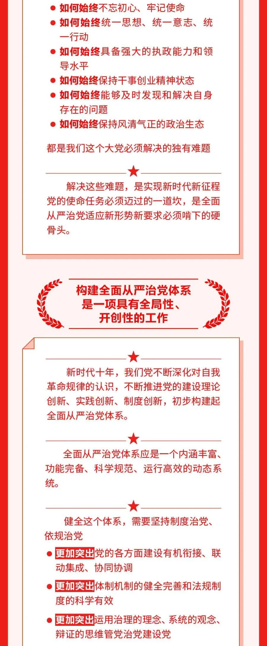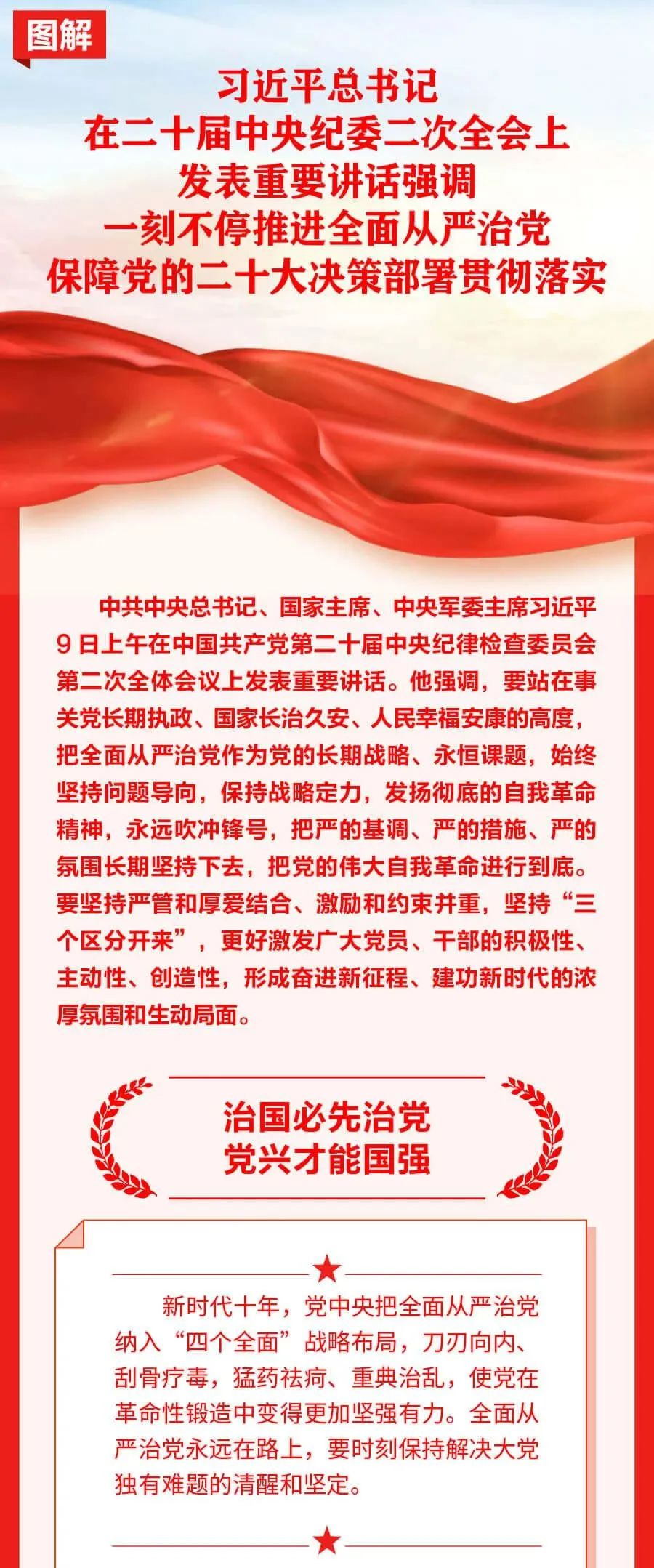 习近平总书记在二十届中央纪委二次全会上的重要讲话高屋建瓴、思想深邃、内涵丰富、论述精辟,深刻分析大党独有难题的形成原因、主要表现和破解之道,充分肯定党的十八大以来全面从严治党取得的伟大成就,为一刻不停推进全面从严治党,深入推进新时代党的建设新的伟大工程指明了前进方向,在全国各地干部群众中引发热烈反响。